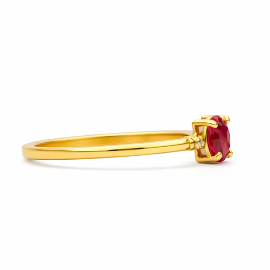 Très beau Rubis accompagné de 2 diamants sur cette bague en or jaune